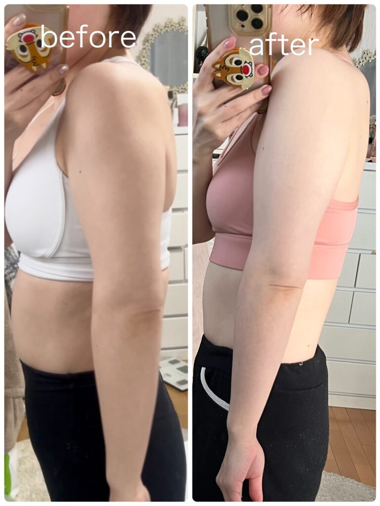 年齢的にも体重をただ落とすだけはリバウンドもあるしたるみにも繋がる気がしました。